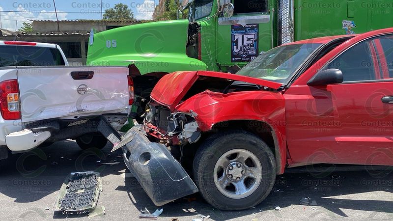 De acuerdo con los primeros reportes, un tráiler realizaba maniobras en el carril con dirección a Armería, lo que generó una fila de autos detenidos. En ese momento, un tractocamión que circulaba a exceso de velocidad no logró frenar a tiempo y terminó por embestir a los vehículos detenidos.