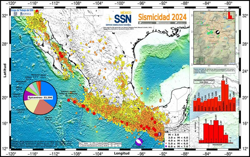 De acuerdo con el Servicio Sismológico Nacional, tan solo en 2024 se registraron más de 25 mil sismos en el país, la mayoría con epicentro en las costas de Guerrero, Oaxaca, Colima y Michoacán.