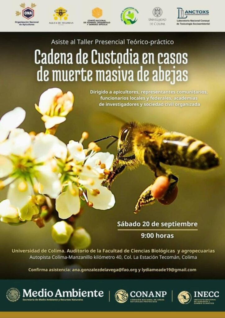 Este encuentro, que sienta un precedente a nivel nacional, contó con la participación del Fiscal General del Estado, Bryant Alejandro García, así como representantes de la Semarnat, la Conanp, el Inecc, el Laboratorio Nacional Conahcyt de Toxicología Socioambiental, la Organización Nacional de Apicultores y apicultores de Colima.