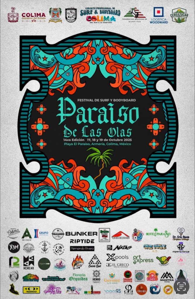 El Ayuntamiento de Armería lanzó una invitación abierta a todas las personas dedicadas a la venta de artesanías, alimentos preparados, botanas y bebidas para participar como expositores en la 14ª edición del Festival de Surf y Bodyboard “Paraíso de las Olas”, que se realizará el 17, 18 y 19 de octubre en Playa El Paraíso.