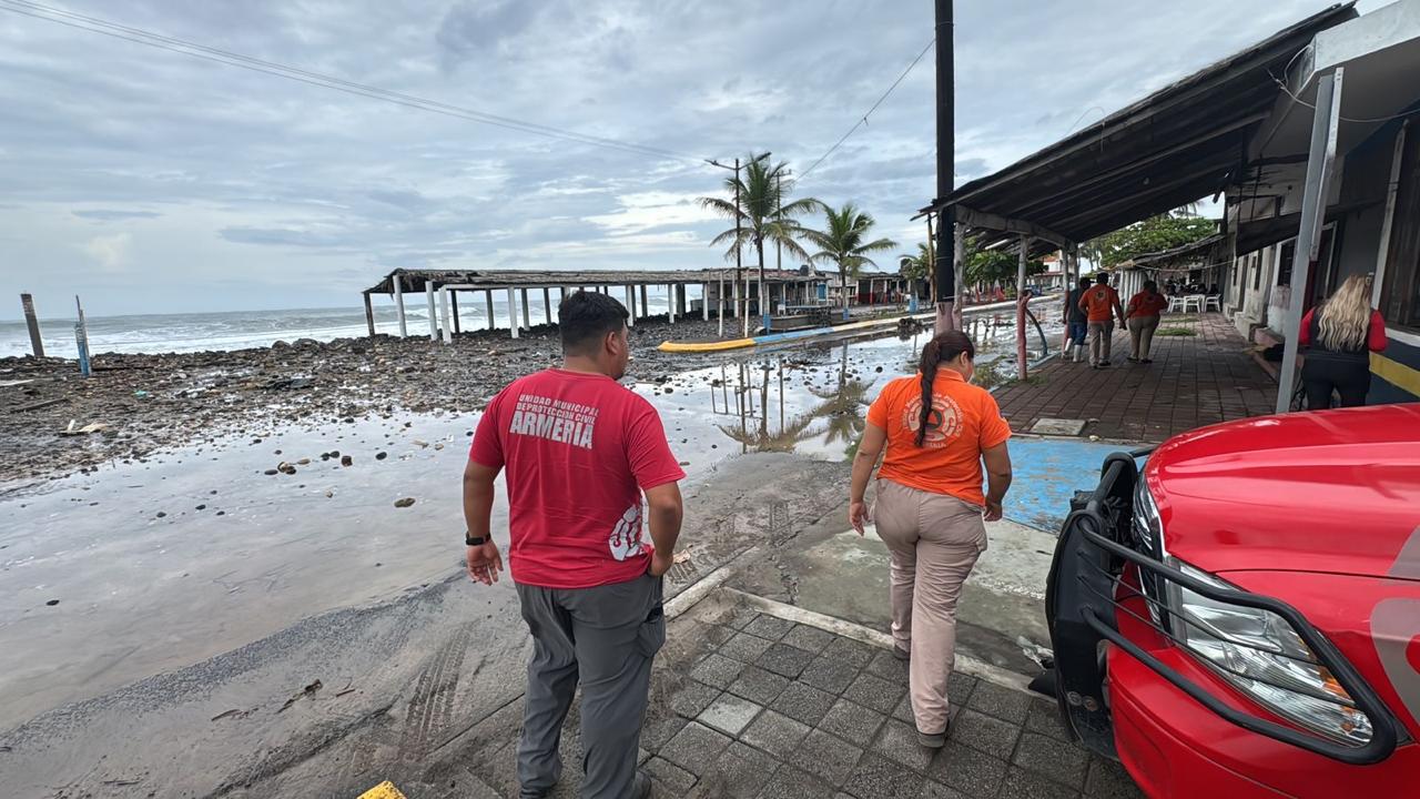 Elementos de Protección Civil se mantuvieron al pendiente durante la contingencia, resguardando a visitantes y prestadores de servicios ante el fuerte oleaje y los vientos.