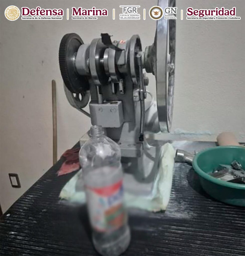 Mediante un despliegue coordinado se ejecutaron los cateos, donde fueron detenidas seis personas, entre ellas el líder de la célula delictiva. Además, se aseguró un laboratorio clandestino, una bodega utilizada para el almacenamiento de drogas sintéticas y aproximadamente 270 kilos de una sustancia con características similares al fentanilo, tanto en polvo como en pastillas, equivalentes a 14 millones de dosis.