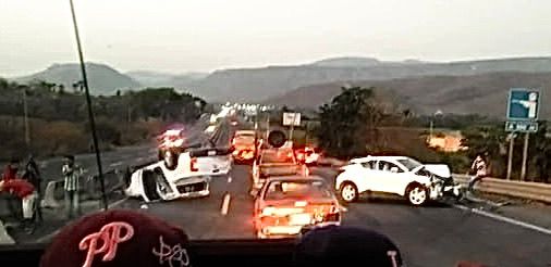 La mañana de este sábado se registró un aparatoso accidente automovilístico en la autopista Colima–Manzanillo, a unos kilómetros del crucero a Las Golondrinas.