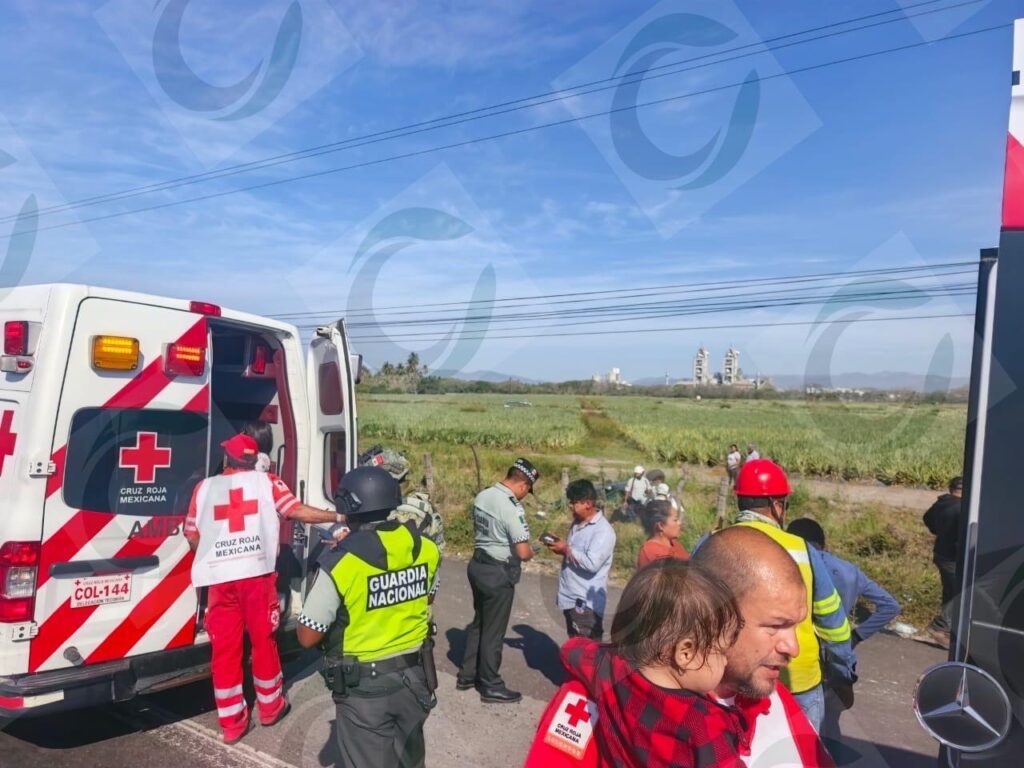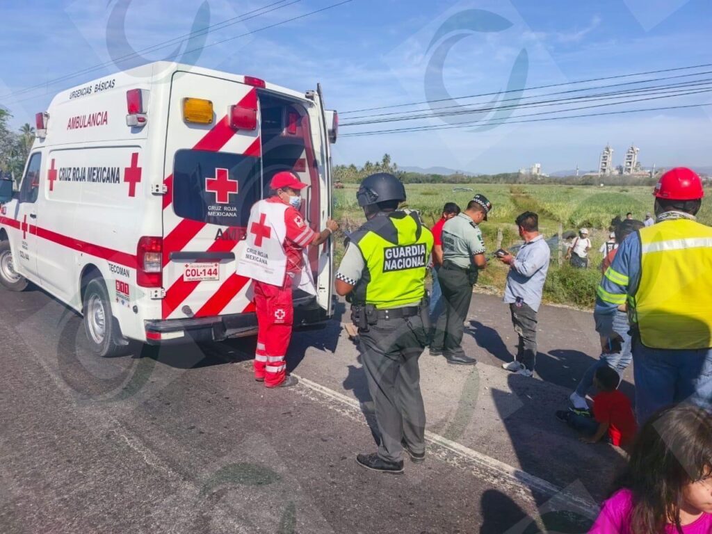 Paramédicos de la Cruz Roja delegación Tecomán acudieron de inmediato al lugar para brindar atención prehospitalaria a los heridos y trasladarlos a recibir atención médica.